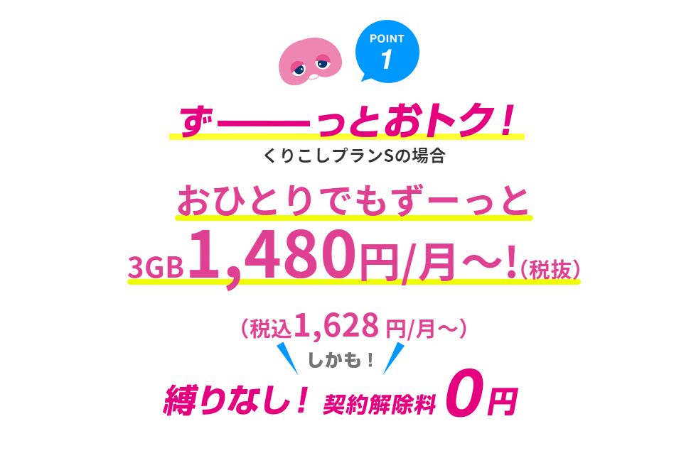 UQ mobileなら1,628円(税込)でずーっとお得!